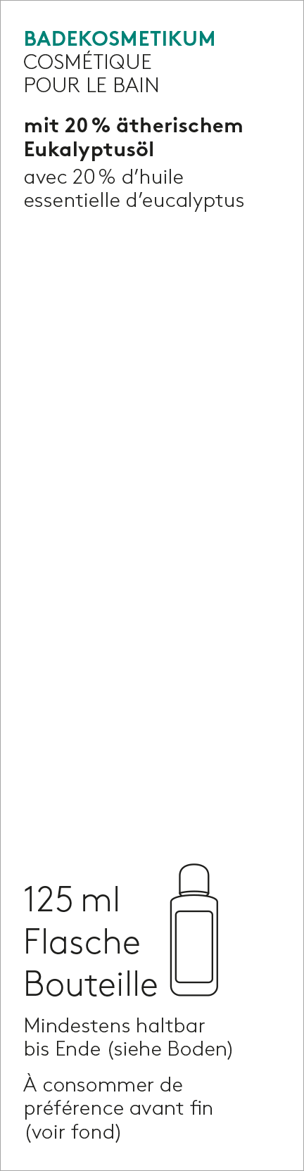 1–2 Verschlusskappen (7,5–15 ml) ins Badewasser geben. 10–20 Minuten bei 35–38 °C Wassertemperatur baden. Bis zu 12 Anwendungen.