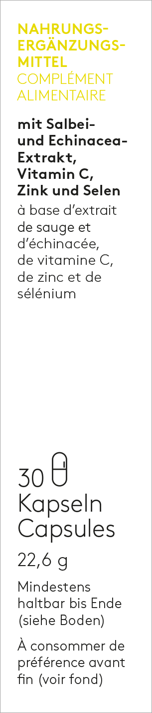 Vitamin C (L-Ascorbinsäure), Salbei-Extrakt, Hülle: Hydroxypropylmethylcellulose; Echinacea-Saftkonzentratpulver,