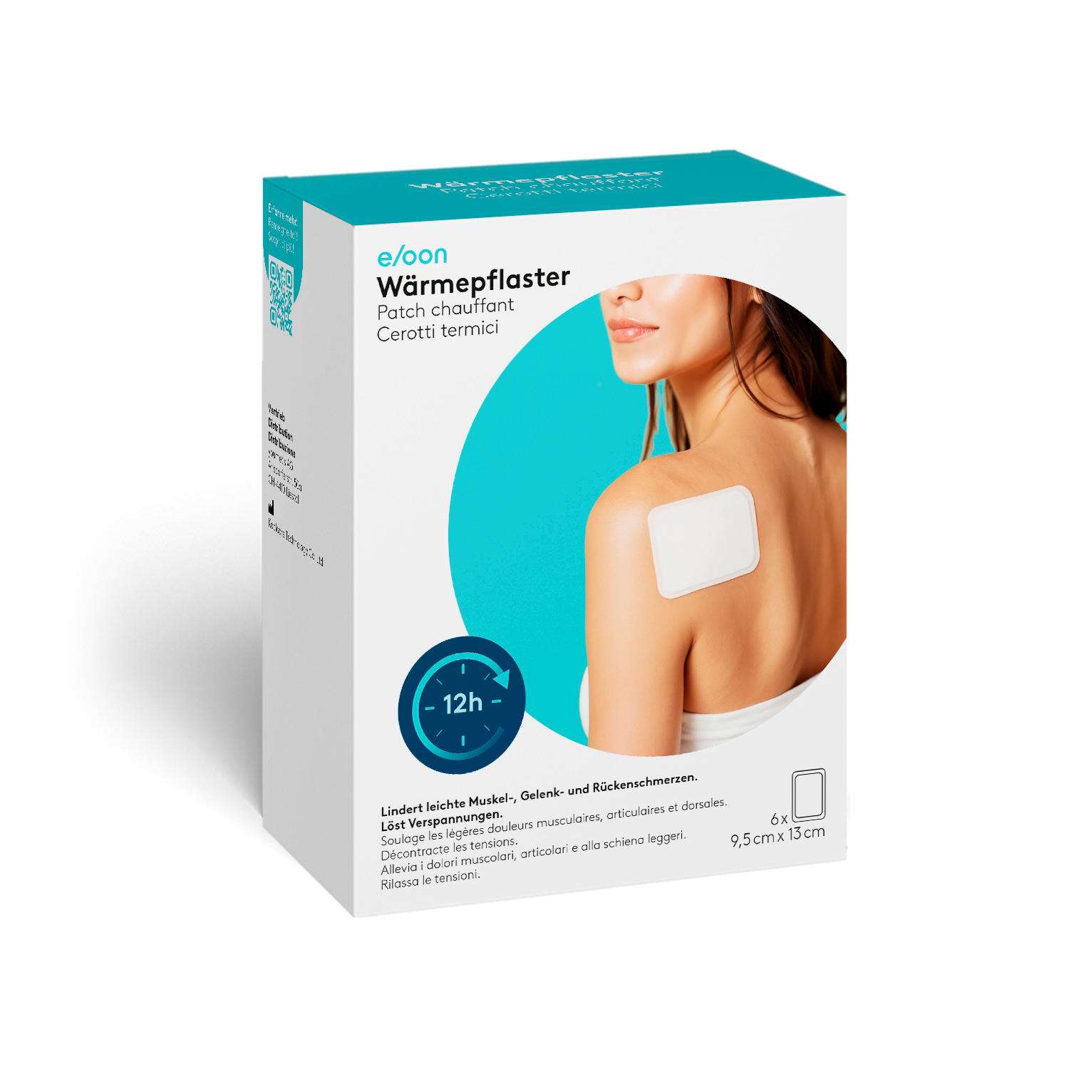 Das eloon Wärmepflaster lindert gezielt Schmerzen bei Muskelverspannungen, Gelenkbeschwerden und Rückenschmerzen. Es spendet über 12 Stunden hinweg konstante, tiefenwirksame Wärme, die direkt an der betroffenen Körperstelle wirkt. Durch die angenehme Erwärmung werden die Muskeln sanft entspannt und beruhigt. Die Durchblutung wird angeregt, der natürliche Regenerationsprozess des Körpers unterstützt und die Schmerzen so gelindert. Das Wärmepflaster passt sich dank seines flexiblen und hautfreundlichen Materials auch bei Bewegung ideal an den Körper an und ist perfekt geeignet für Rücken, Nacken, Schultern und Gelenke, wie z.B. Knie.