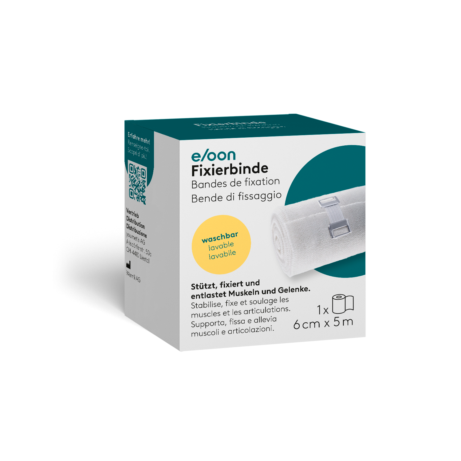 Die eloon Fixierbinde bietet zuverlässigen Halt und gezielte Unterstützung bei Verletzungen, im Sport und zur Förderung der Durchblutung. Die kräftige Fixierbinde eignet sich ideal für Stütz- und Entlastungsverbände bei Beschwerden des Bewegungsapparates, wie z.B. nach Verstauchungen, Prellungen oder Operationen. Zudem kann sie als Sportbandage eingesetzt werden für sicheren Halt und Schutz bei Muskelverletzungen. Dank der kurzen Dehnbarkeit übt die Binde einen hohen Druck bei Bewegung und gleichzeitig nur wenig Druck in Ruhephasen aus. Dadurch ist sie ideal geeignet für Kompressionsverbände, z.B. zur Vorbeugung von Blutgerinnseln oder zur Förderung der Durchblutung. Die hochwertige Gewebestruktur mit hohem Baumwollanteil ist atmungsaktiv, hautfreundlich und auch über längere Zeit angenehm zu tragen. Die eloon Fixierbinde kann gewaschen und mehrfach wiederverwendet werden.
